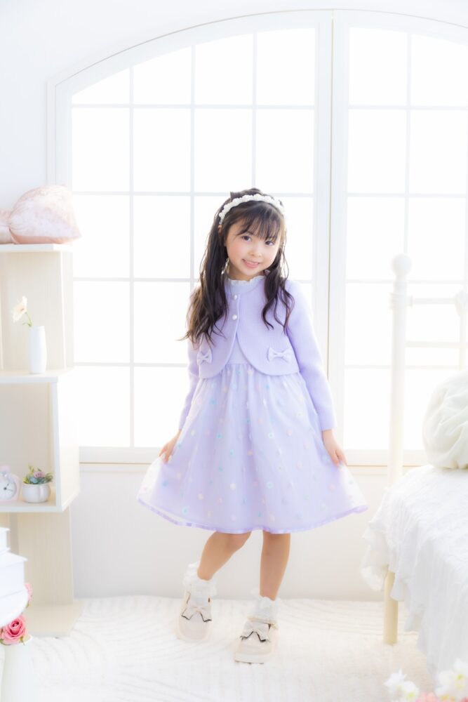 お子様の間で大人気のカラー、ライトパープルのワンピース!