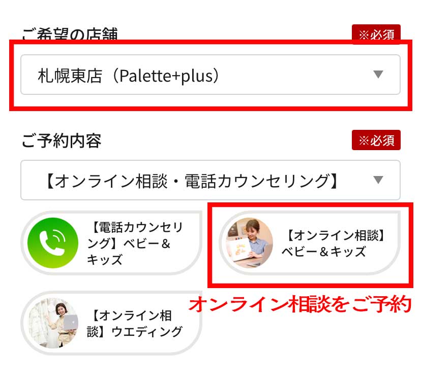 STEP2:オンライン相談または電話カウンセリングが可能な日程を選択して予約ください♪