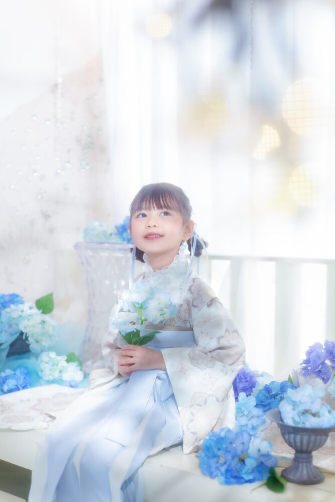 可愛らしい紫陽花に包まれた爽やかな卒園袴のビジュアルです♪