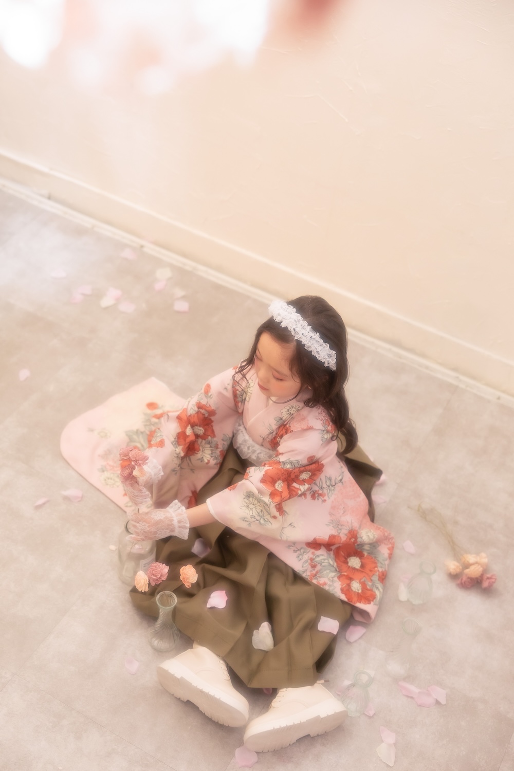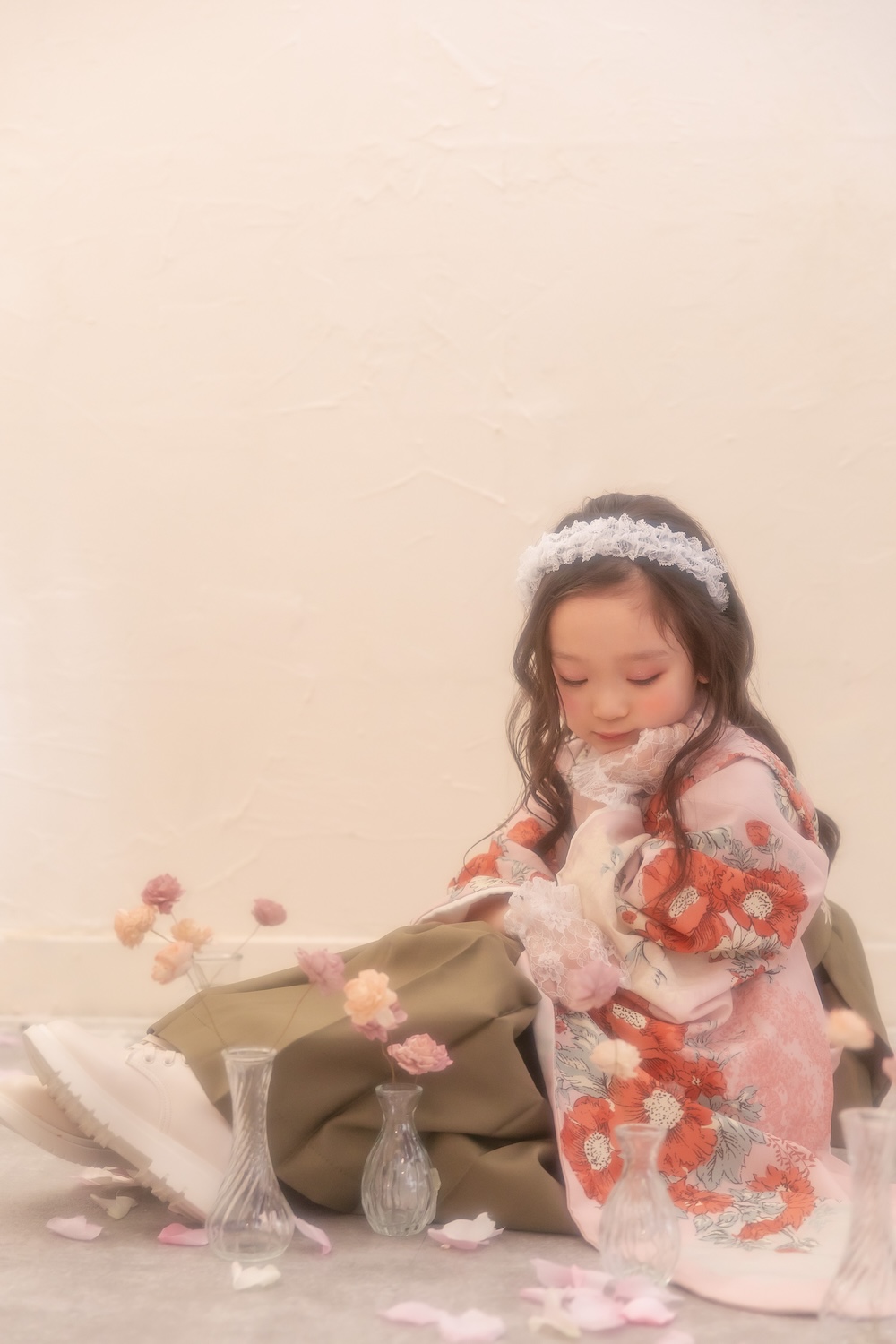 New visual『Hazy Romance』 卒園という特別な節目に。 少し背伸びした袴姿で迎える、春の記念撮影。 今回のビジュアルでは、 やわらかな雰囲気の中に“凛”とした可愛らしさを感じられる 卒園袴コーディネートを作りました。