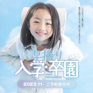 卒園・入学の撮影シーズン到来!新ビジュアル公開! 卒園から入学へと成長していくお子様の大人っぽい一面を引き出す 艶感のあるビジュアルが登場いたしました!