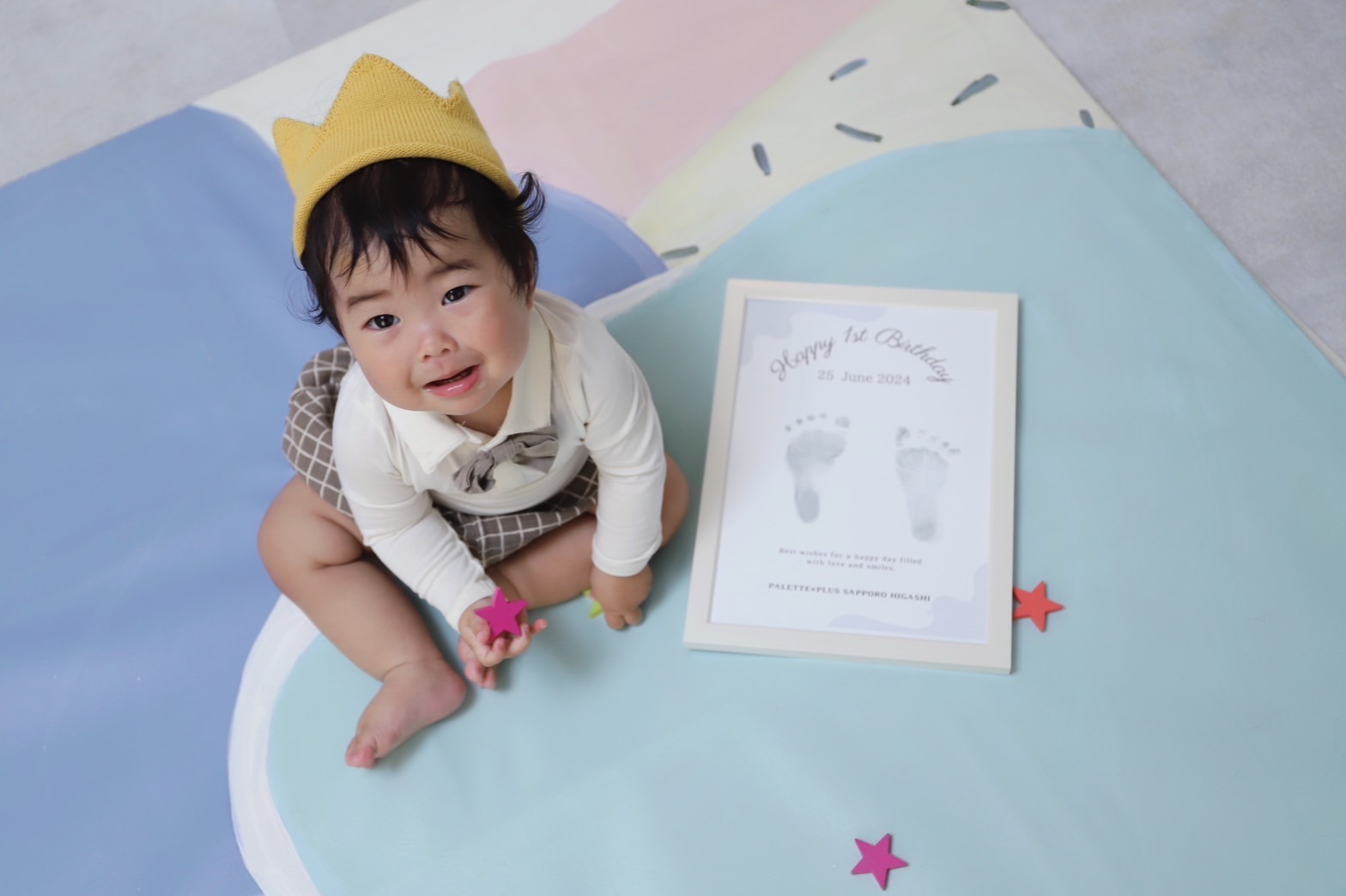 皆さんこんにちは! 北海道札幌市東区にあるベビー&キッズ専門フォトスタジオ、palette+plus東店です! 今回はPalette+Plus札幌東店で新しく始まったサービス 1歳記念撮影のお子様の【足形アート】プレゼントについてのご紹介をさせて頂きます♬ 当店でしか撮影できないサービスです! ぜひご覧ください♡