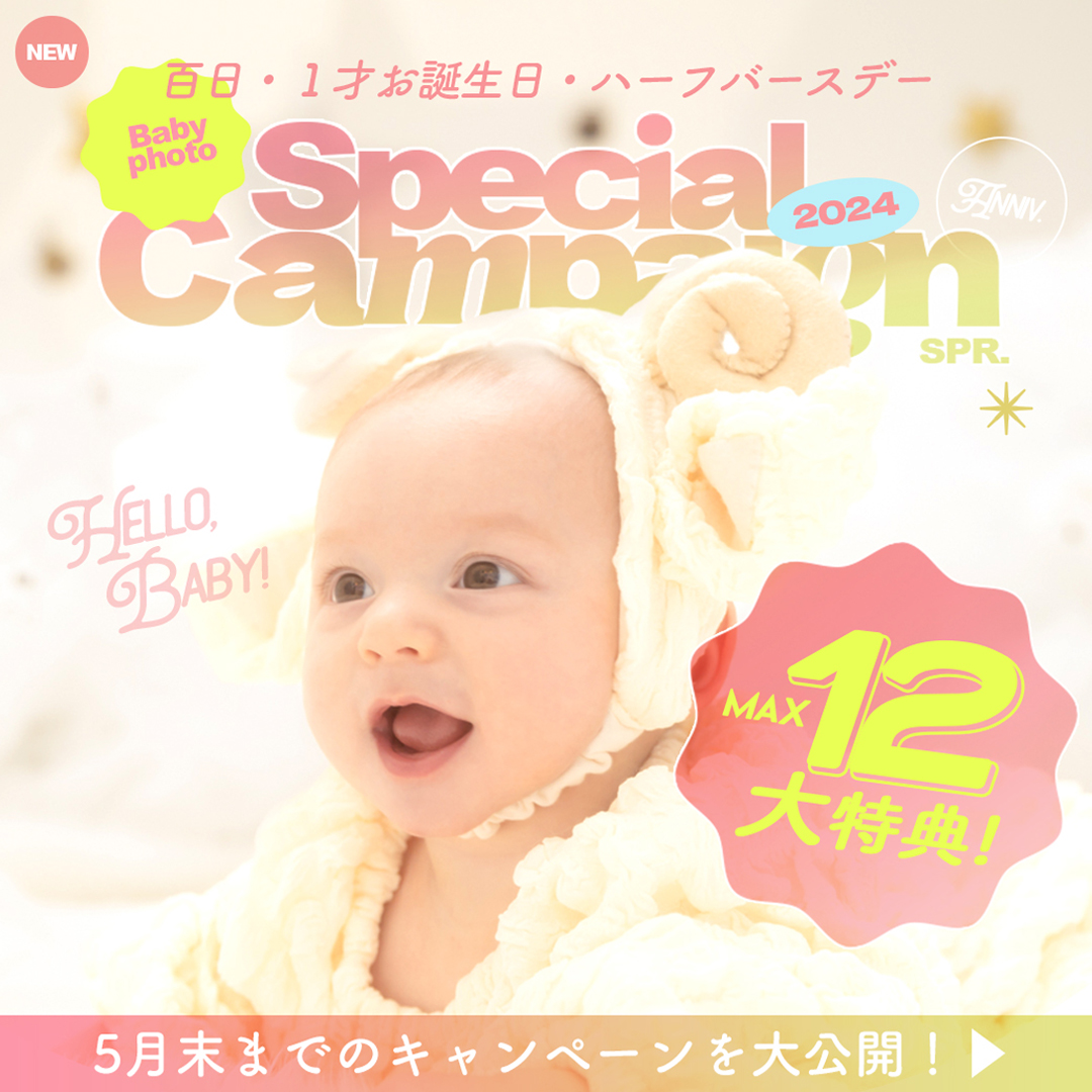 【New Visual coming !】Kirakiraスタジオより新ビジュアル登場!百日、ハーフバースデー、1歳のベビー撮影にオススメ!