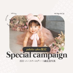 みなさんこんにちは! 北海道札幌市にあるpalette + Plus札幌東店です。 お子様のご記念撮影をご検討の方はお急ぎ下さい! ただいま2月中にご撮影いただける方限定で土日料金(通常¥3,300)を無料でご案内しております! 是非この機会に当店でのご撮影をご検討くださいませ。