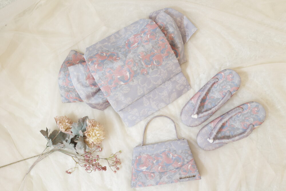帯や羽織紐、草履、バッグなど、豪華な刺繍や素材が用いられていて、華やかさを一層高めます。