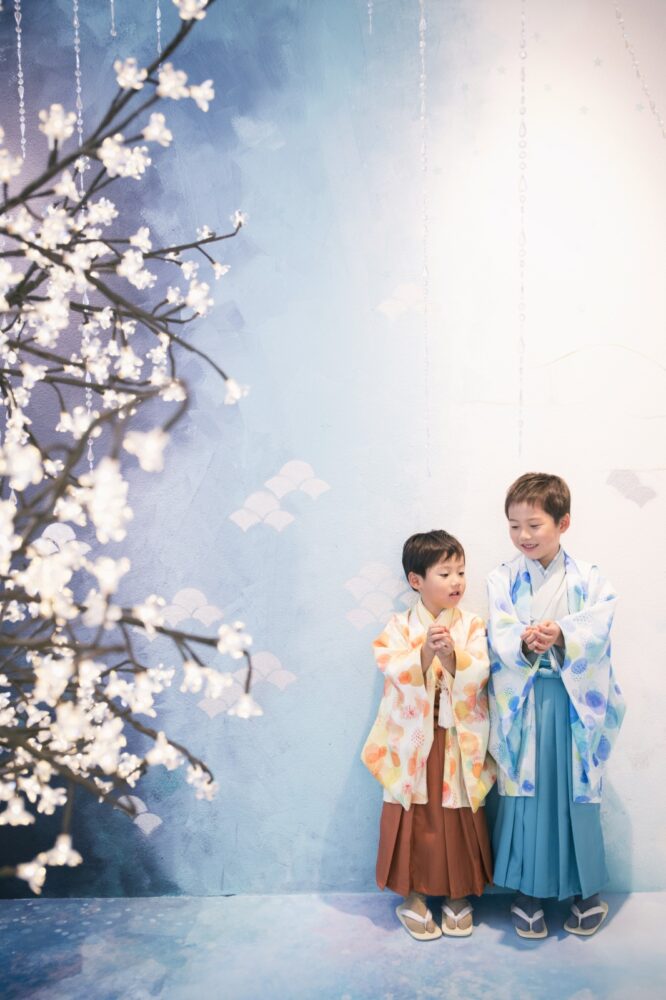 袴と被布も、七五三の着物選びに欠かせません。男の子は、袴が主流で、短めの丈で動きやすいものがおすすめです。