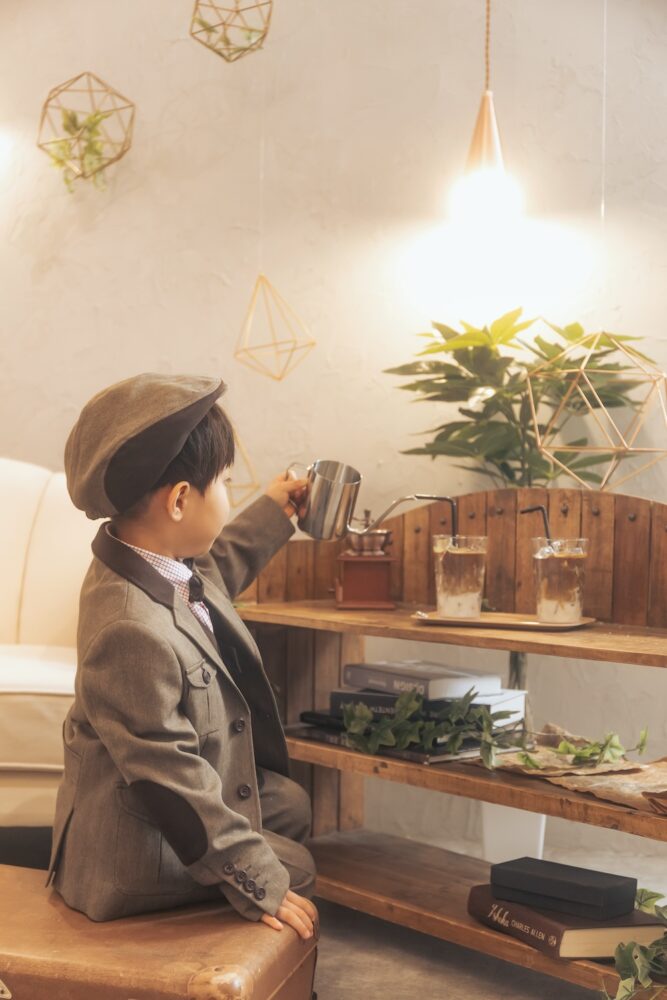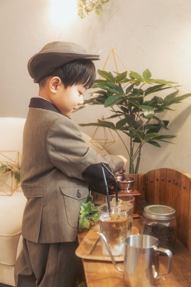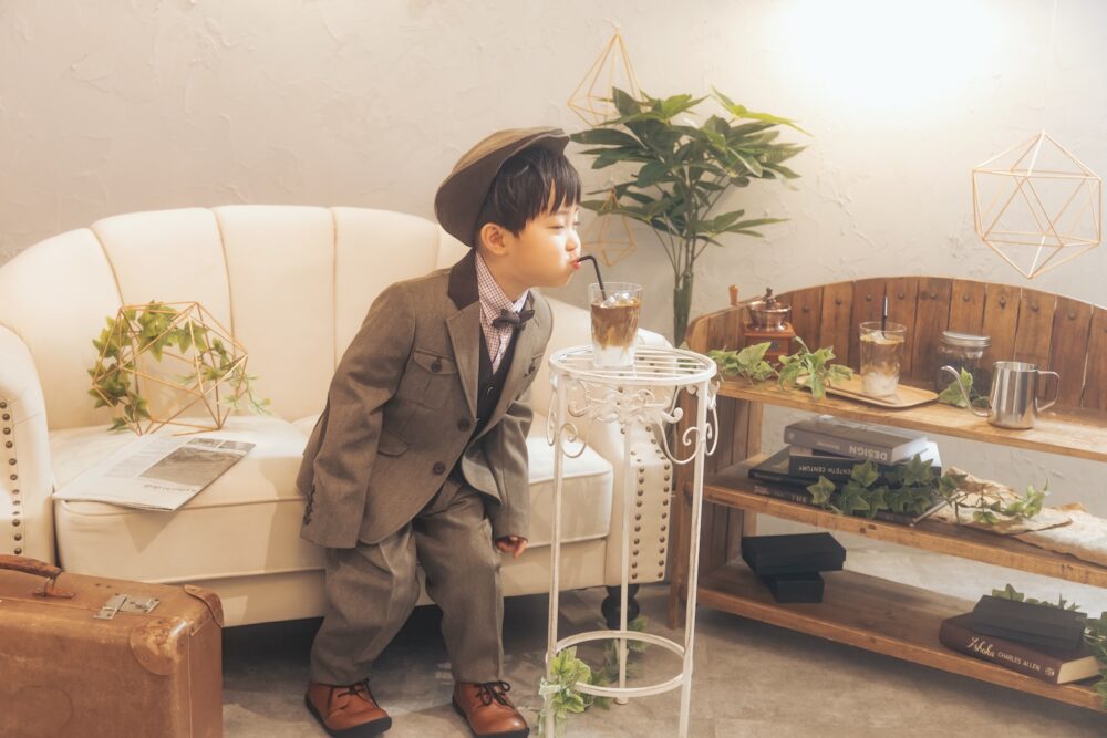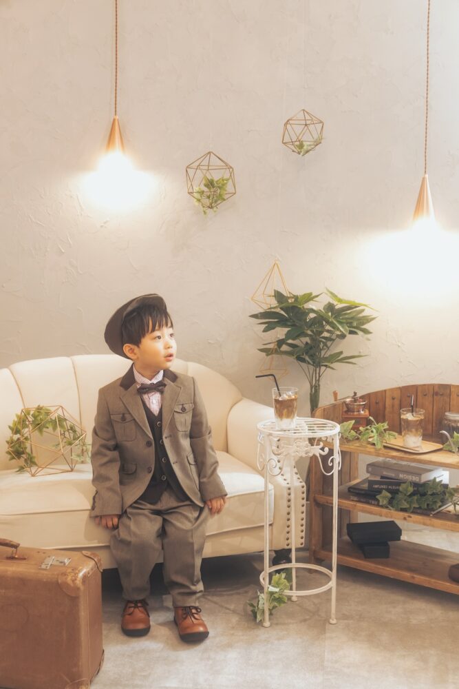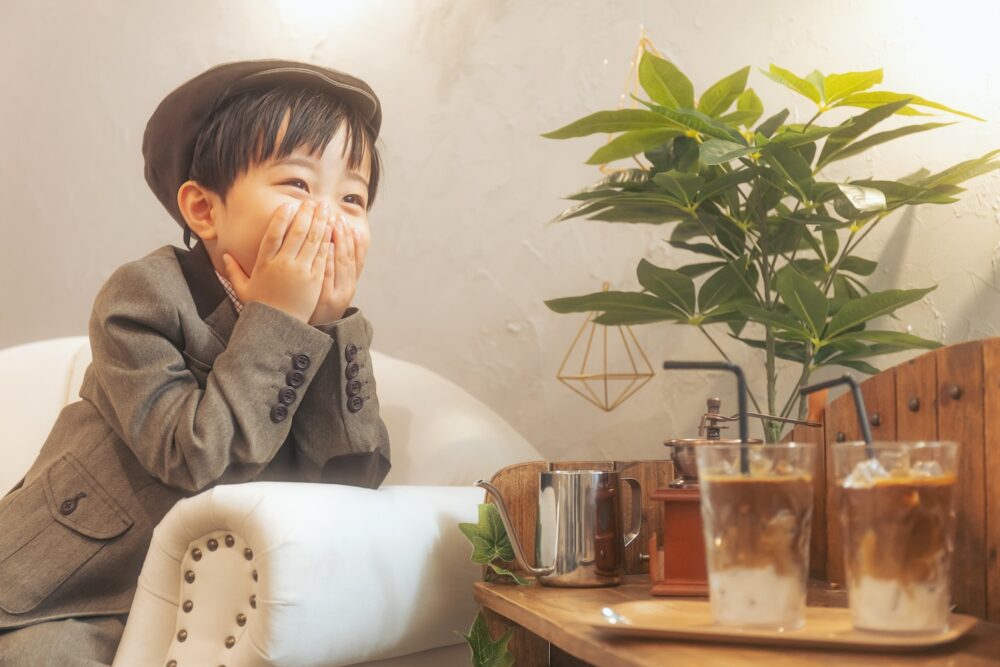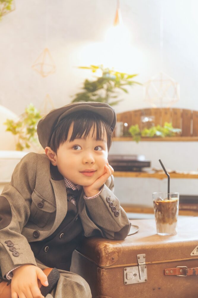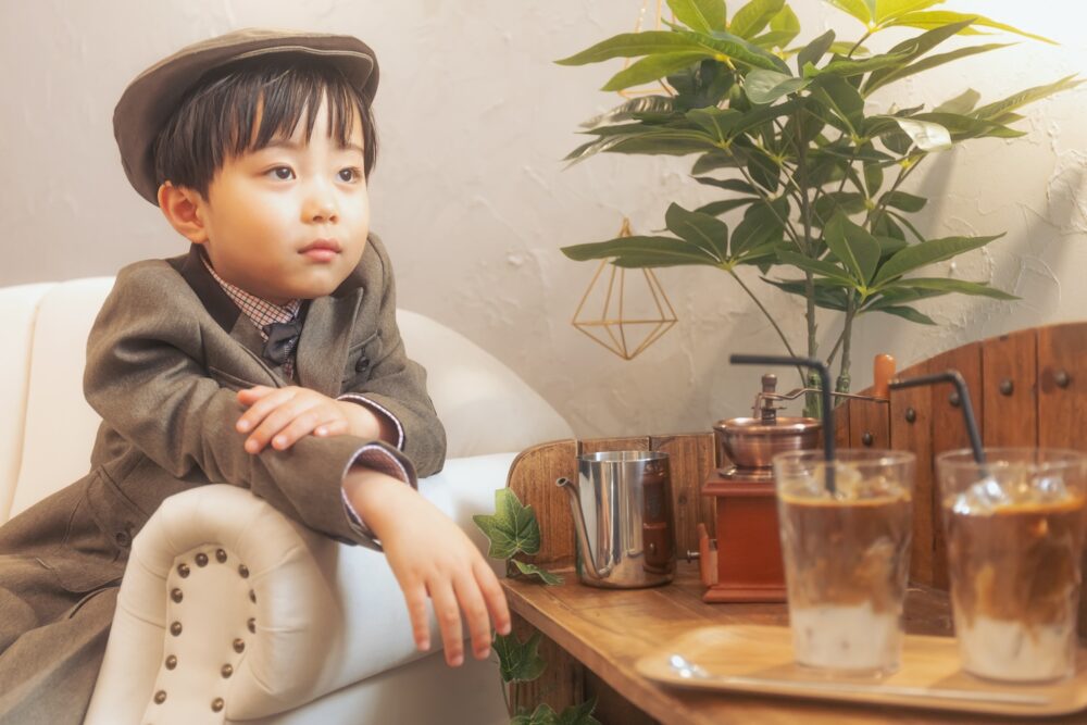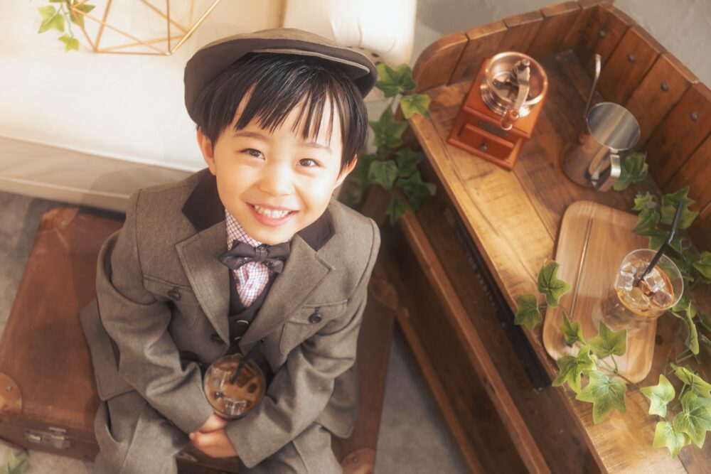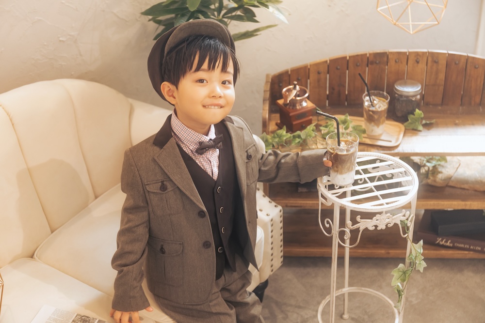 北海道札幌市東区にあるベビーキッズフォトスタジオ、palette+Plus札幌東店です。 東店より七五三男の子の新しいビジュアルが登場いたしました! ちょっぴり背伸びした大人な空間【café au lait】をご紹介。 七五三記念、お誕生日記念にもってこいのビジュアルです!