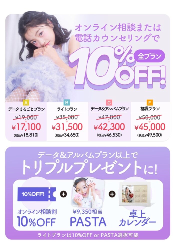 詳しい予約の取り方や、衣装・スタジオについては、無料オンライン相談でお問い合わせ・ご予約ください!