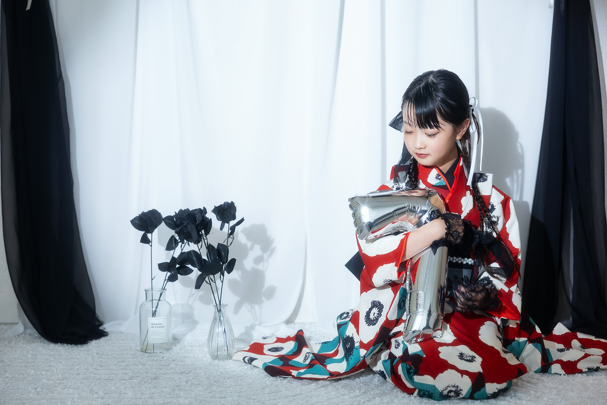 東店より七五三の新しいビジュアルが登場いたしました! Fuwafuwaスタジオからちょっぴり大人なおしゃれ七五三フォトをお届けします。 モノトーンの背景に鮮やかな着物が映えるとっておきのビジュアルです♪