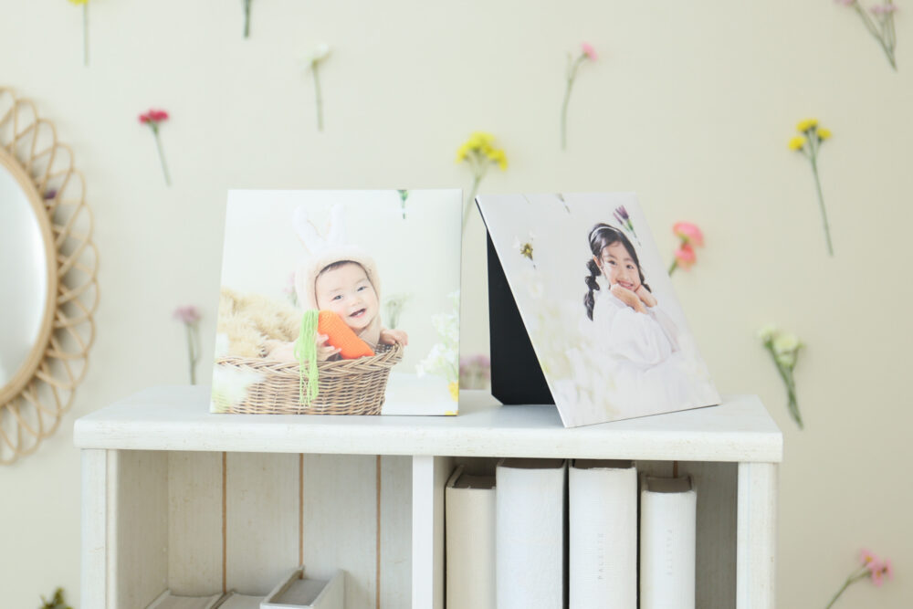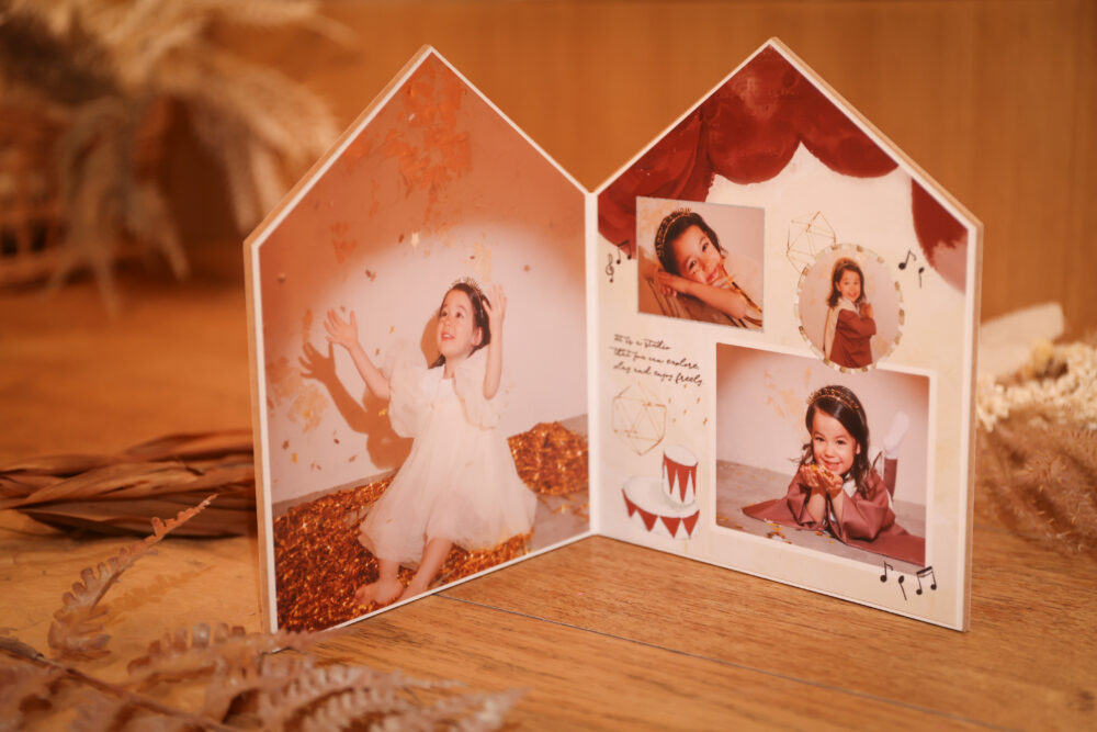 撮影した最高の写真は、ぜひ「カタチ」に残しましょう 。札幌東店があるPalette+plus店舗限定で、スタジオごとのデザインが入った家型アルバム「ハウスアルバム」や、お誕生日プレゼントにぴったりのケーキ型アルバム「アニバーサリーアルバム」など、お家のインテリアにも馴染むモダンなオリジナル商品をご用意しています 。