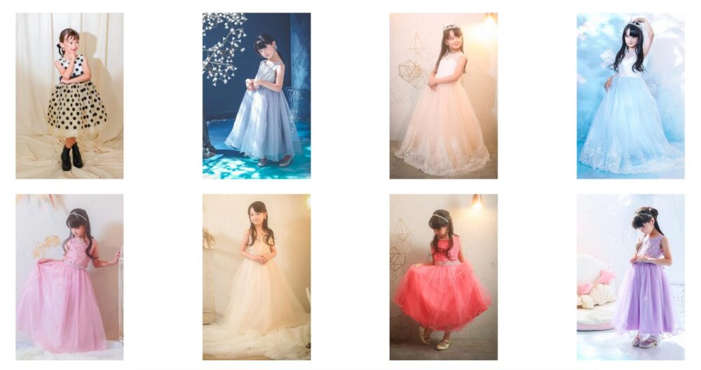 特にドレスは、大人のドレスブランドから買い付けた高品質なものを七五三サイズに導入しており、一般的な写真館の既製品とは一線を画す洗練されたデザインが自慢です。
