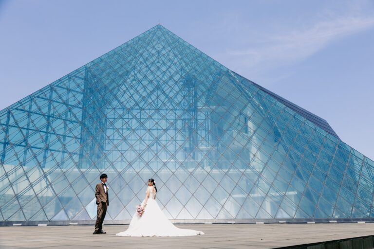 青空の下で撮っても美しいですが、夕焼けがガラスに映り込む夕方の撮影が特におすすめです。