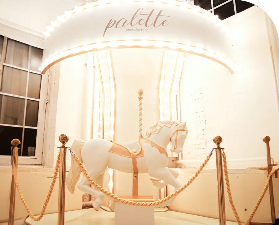 スタジオの中に木馬があり、本当に乗れちゃいます🎠