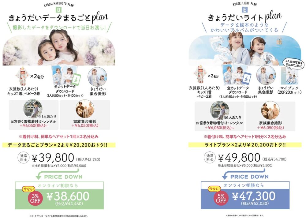 データのみの「きょうだいデータまるごとプラン」、アルバム付きの「きょうだいライトプラン」の2つをご用意🌟