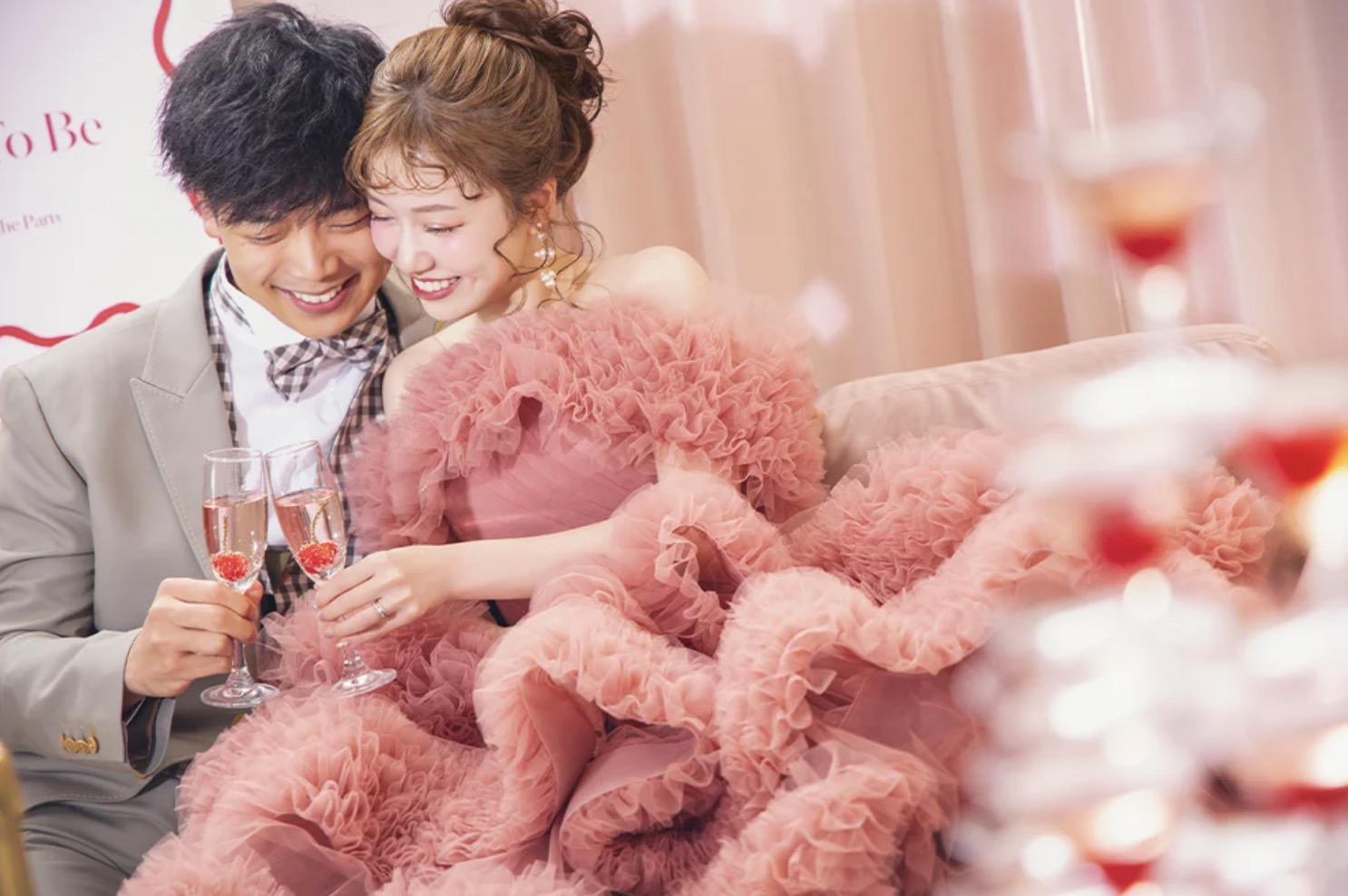 ピンクのカラードレスが花嫁たちに新鮮な印象と特別感を与えています。