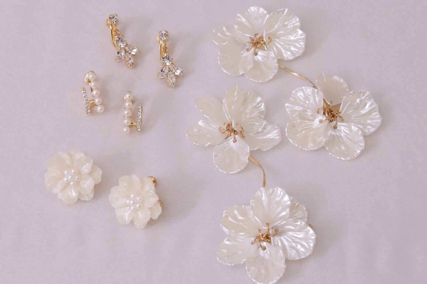 イヤリングやネックレスはシンプルなものでも存在感があり、可愛らしさや上品さを引き立てます♪