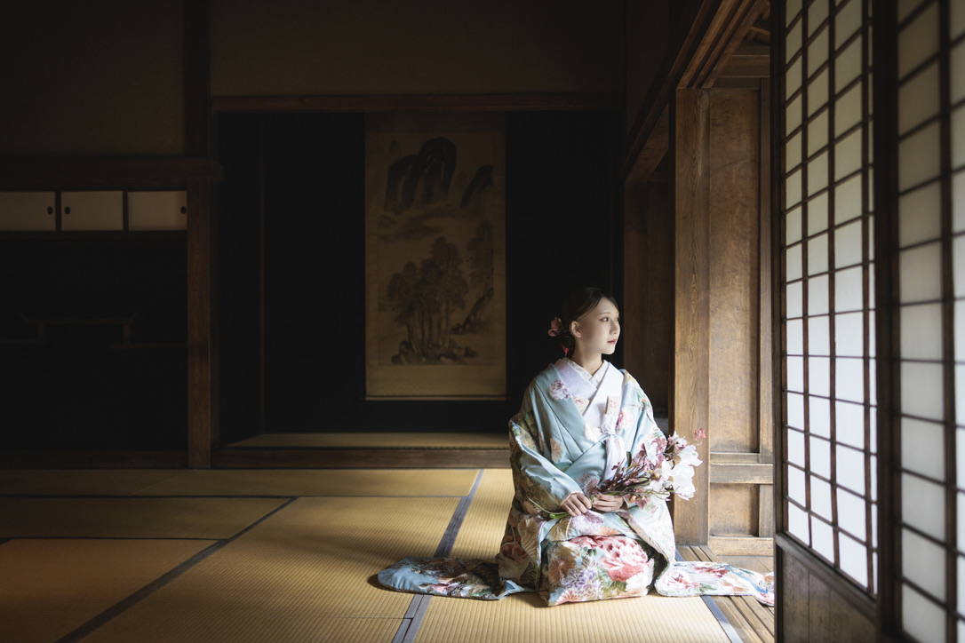 スタジオ撮影でも、背景に合わせて小物や照明を工夫すると、和装の世界観を存分に楽しめて◎