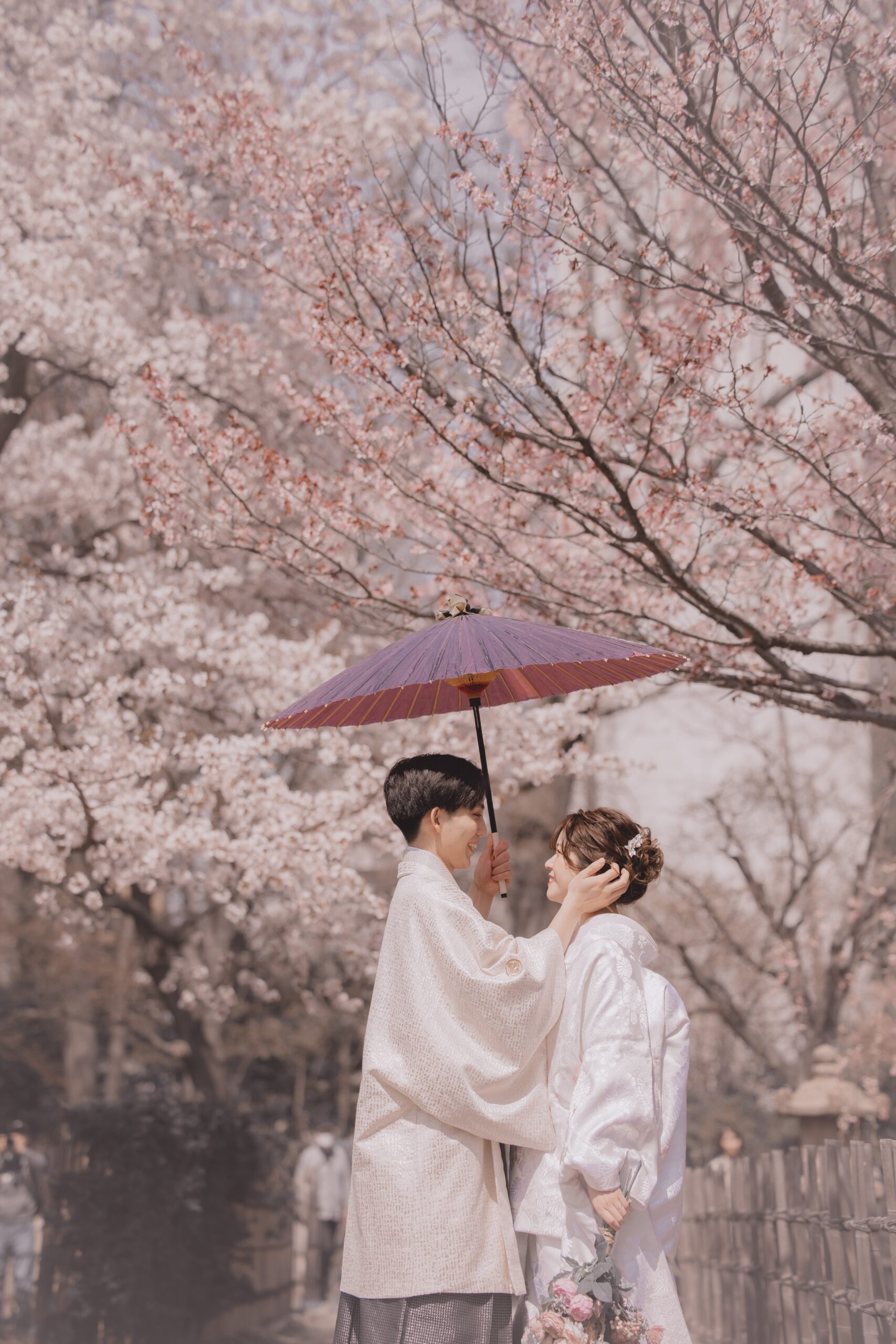 春の桜が咲くロケーションや秋の紅葉が美しい背景と一緒に撮影すると