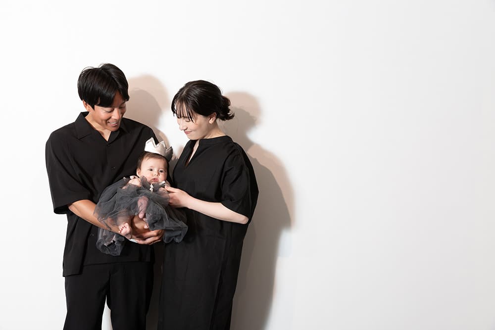 家族全員でテイストを合わせると統一感のあるフォトになります。
