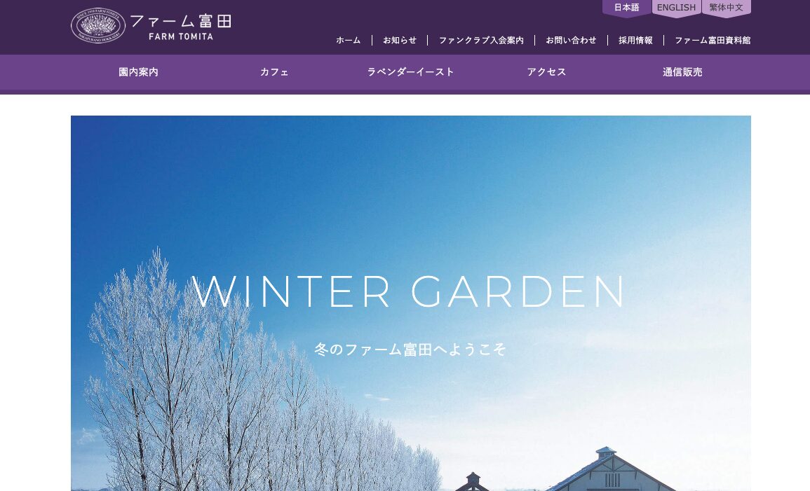 また、ラベンダー畑は雪に覆われて一転し、真っ白な世界へと変貌します。