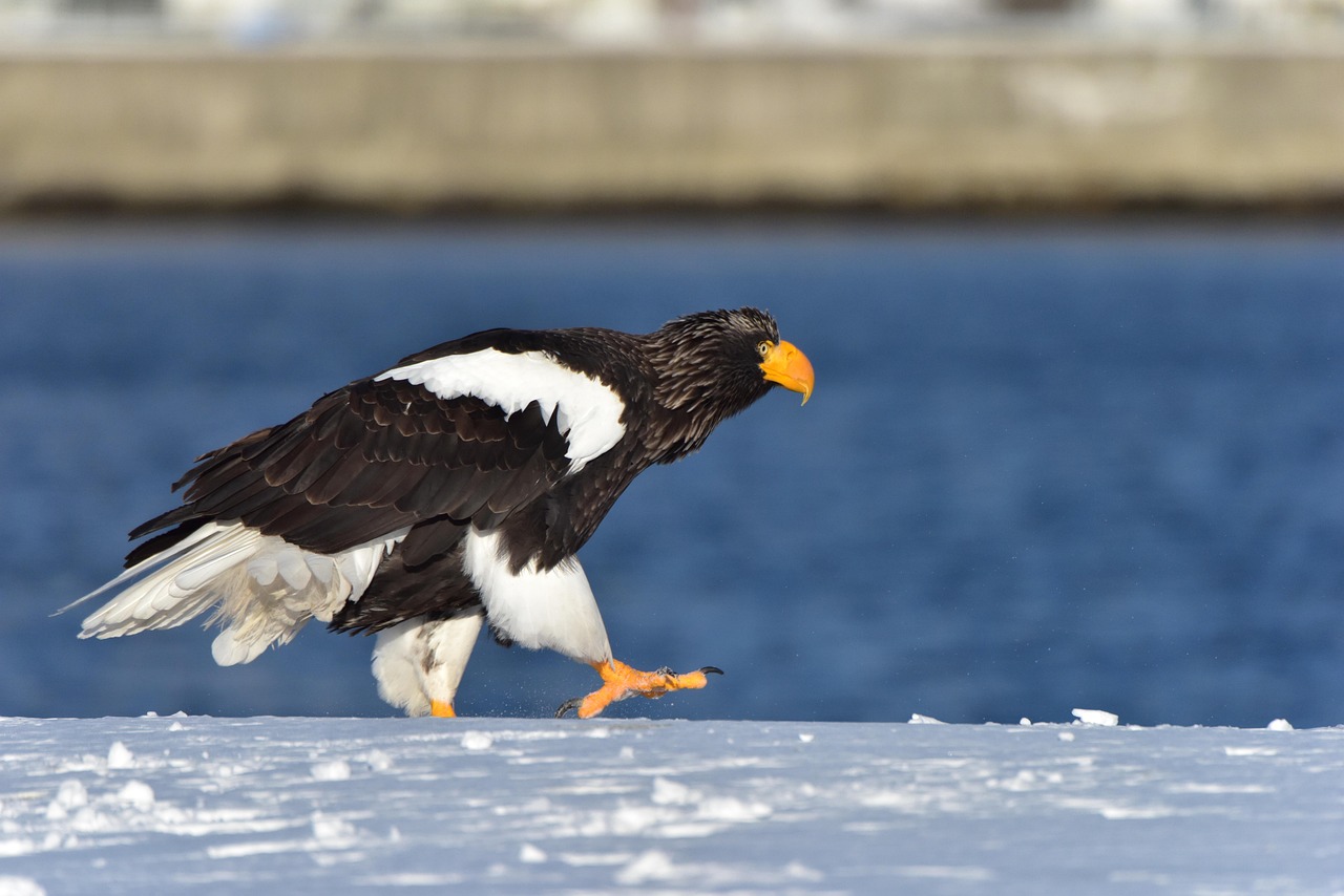 流氷の上に集まるオオワシ・オジロワシなどの野生動物を船上から間近で観察できます。