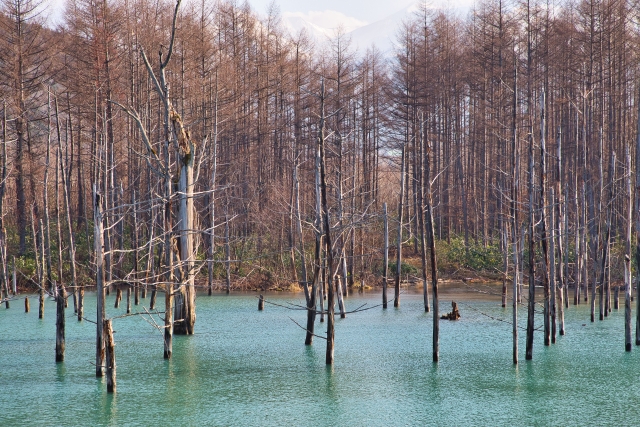 冬に訪れると、池の水面は徐々に凍っていきますが、完全には凍らず、神秘的な青色を保ち続ける時間も楽しめるのが特徴です🌟