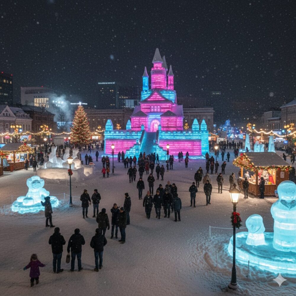 氷の彫刻や巨大雪像など、思わず息を呑む規模のアート作品が並ぶイベントや、極寒の環境も体験できるユニークなアクティビティが充実しているのが特徴です。