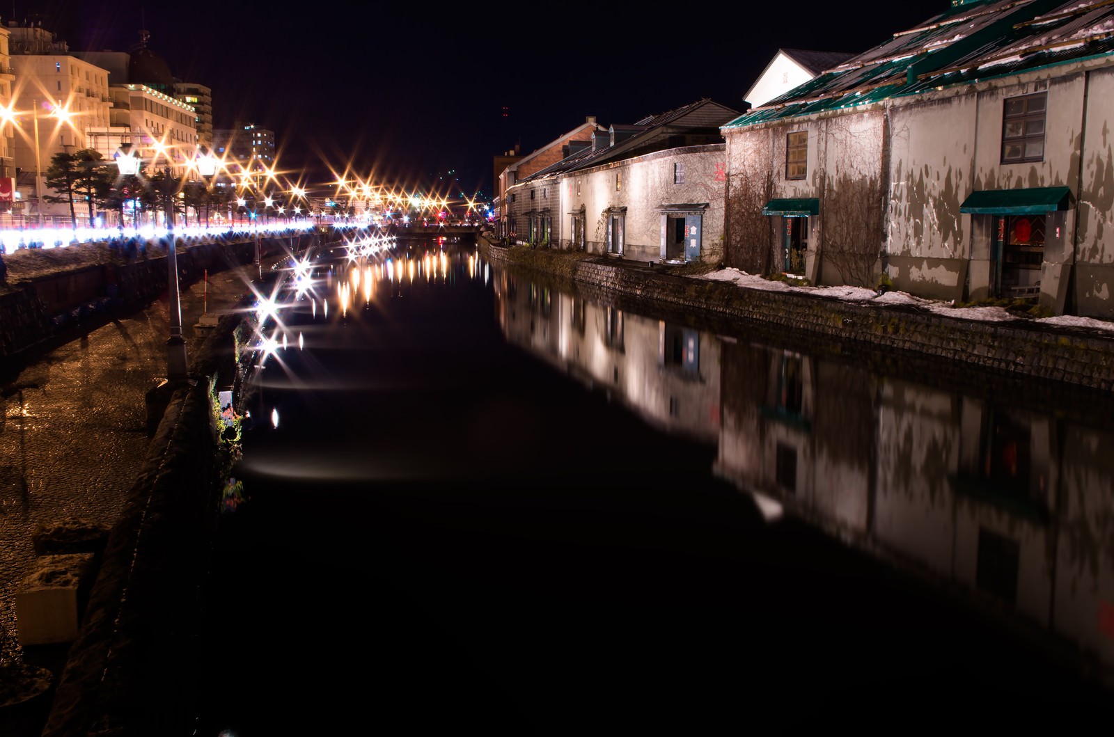 中でも小樽運河は全長1,140mもの緩やかなカーブで、石造倉庫や歴史的な建物が並び、冬になると雪景色が一層映えます。