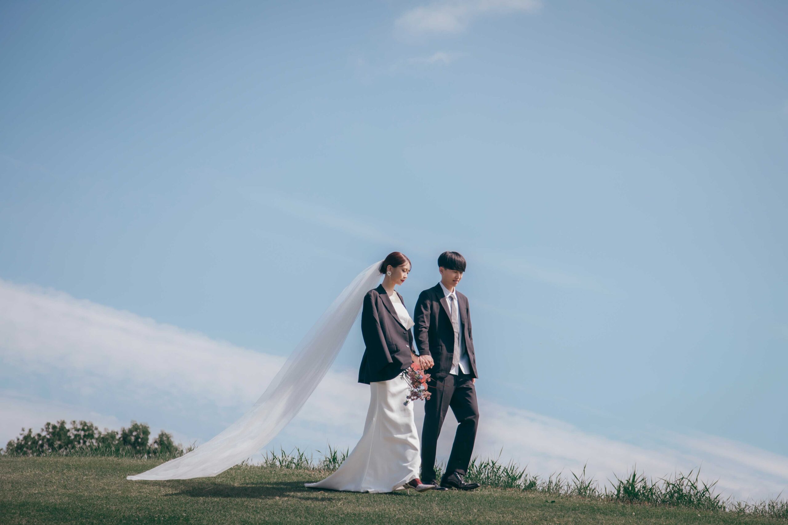 カラフルな花畑や豊かな自然をバックに撮ることで、他にはないオリジナルティ溢れるウェディングアルバムが完成します。