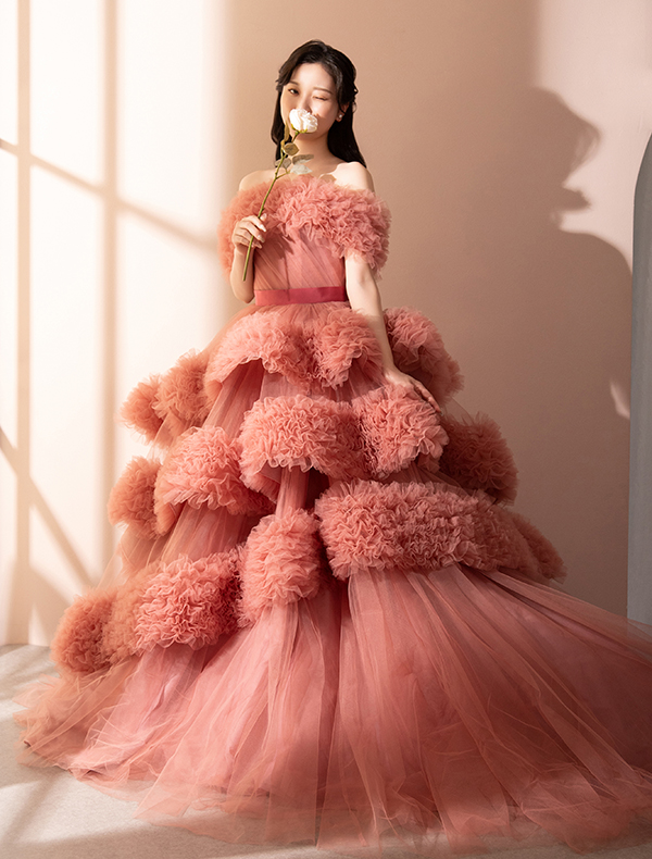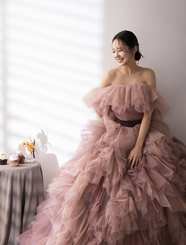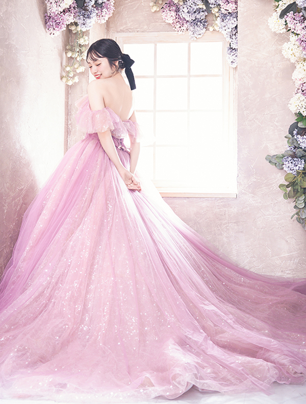 カラードレスは、披露宴だけでなく前撮りやフォトウェディングでも人気です。