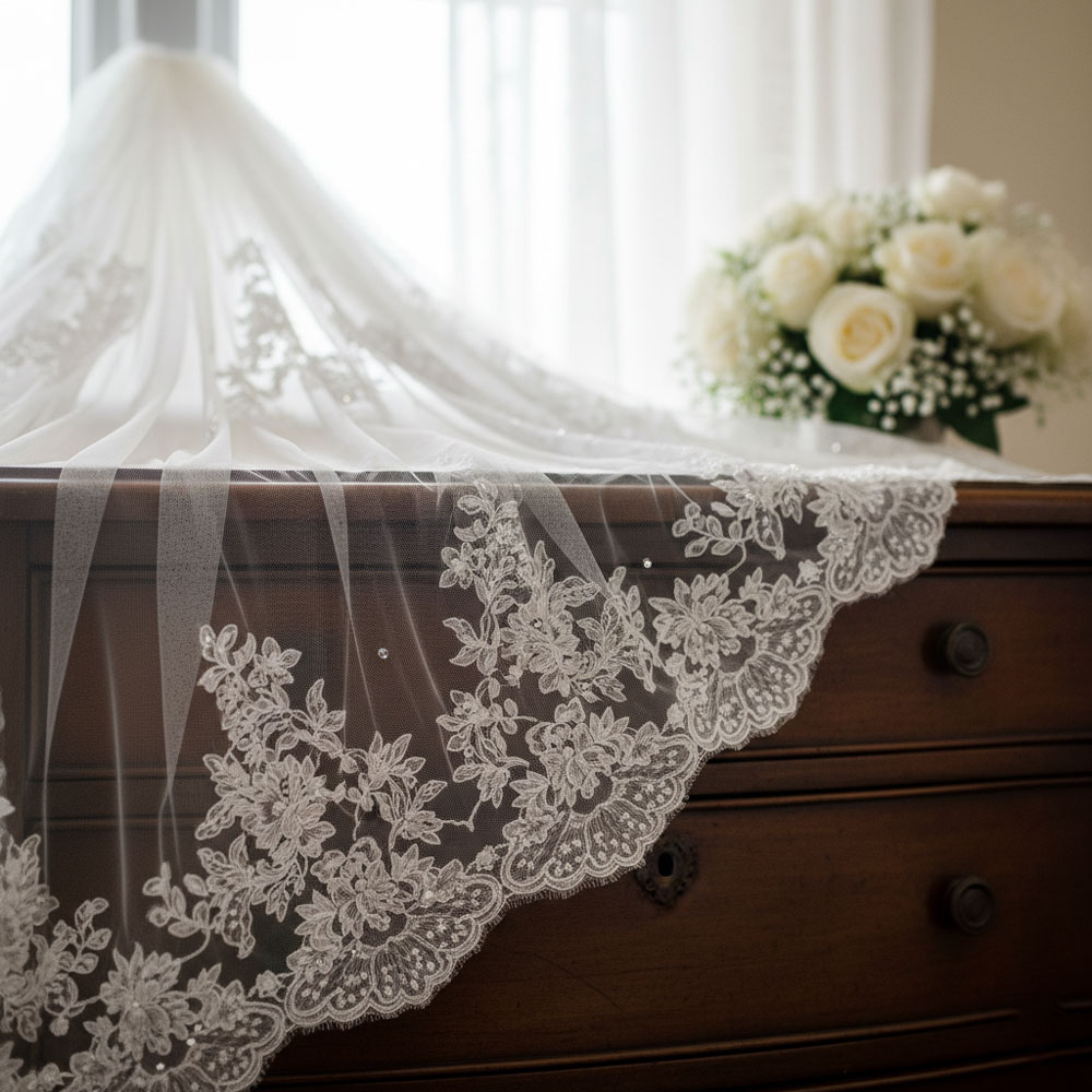 トレーン付きベールならロングドレスにぴったり、ショートベールはミニ丈やカジュアルなスタイルに合わせやすいです。