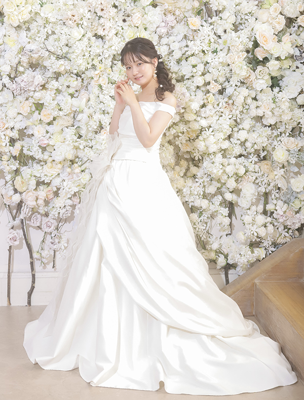 余計な装飾やボリュームを抑え、スリーブやスカートのライン、上質な生地やサテンの光沢感が花嫁自身の美しさを引き立ててくれます。