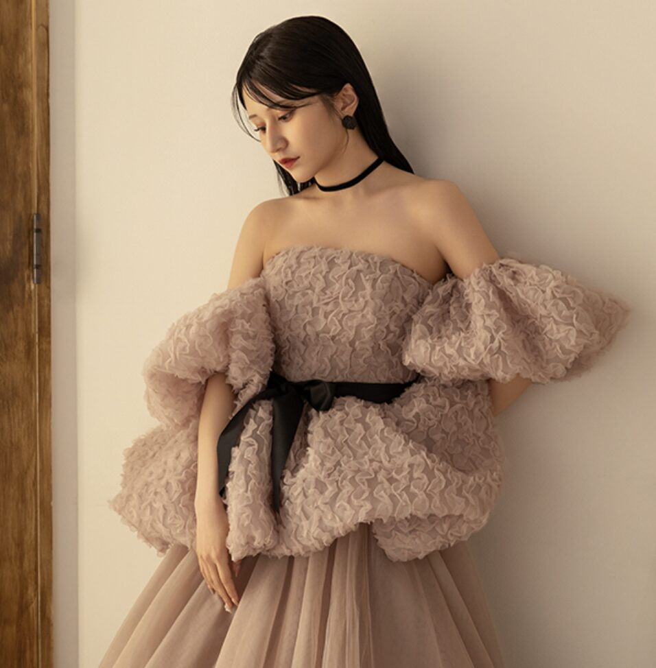 例えばスカートのボリューム感や、生地の質感、デコルテや袖のデザインで雰囲気が大きく変化します。