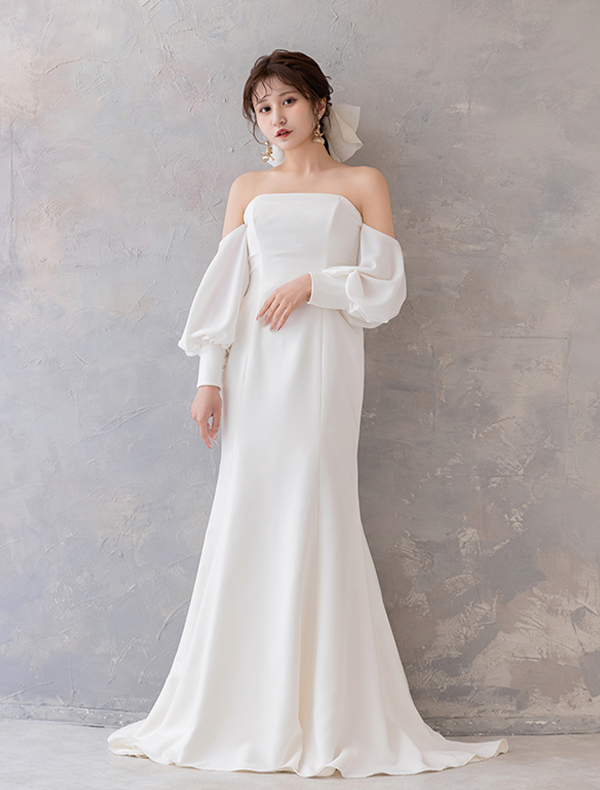 オフショルダーは鎖骨と肩が美しく強調され、可憐で清楚な雰囲気に仕上がります。