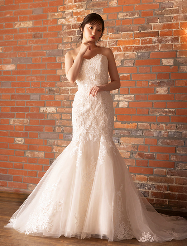 マーメイドラインのウエディングドレスは、ボディに沿う美しいシルエットが特徴で、大人な女性に圧倒的な人気を誇ります。