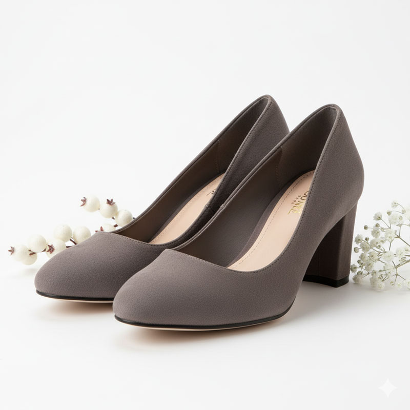 パンプスならグレーやベージュなど落ち着いたトーンがおすすめです。ストッキングは肌色を選び、防寒したい場合はきれいめタイツでもOK。