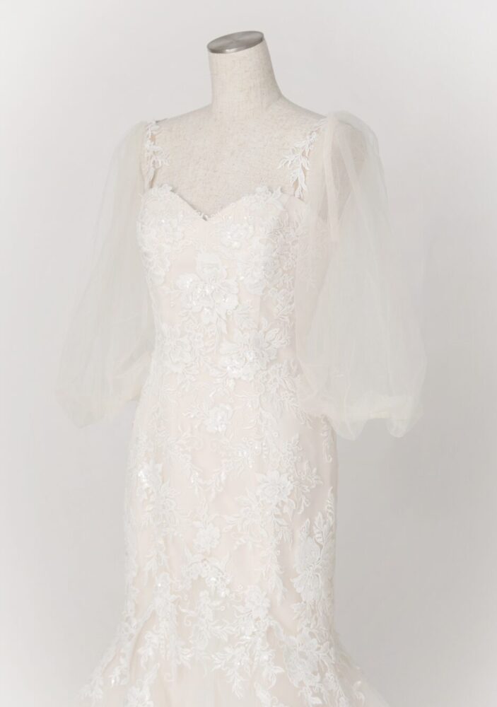 フィッシュテールスカートや、透け感のあるチュールやレース素材のドレスは、小柄な方やロング丈に苦手意識がある女性にもおすすめ。