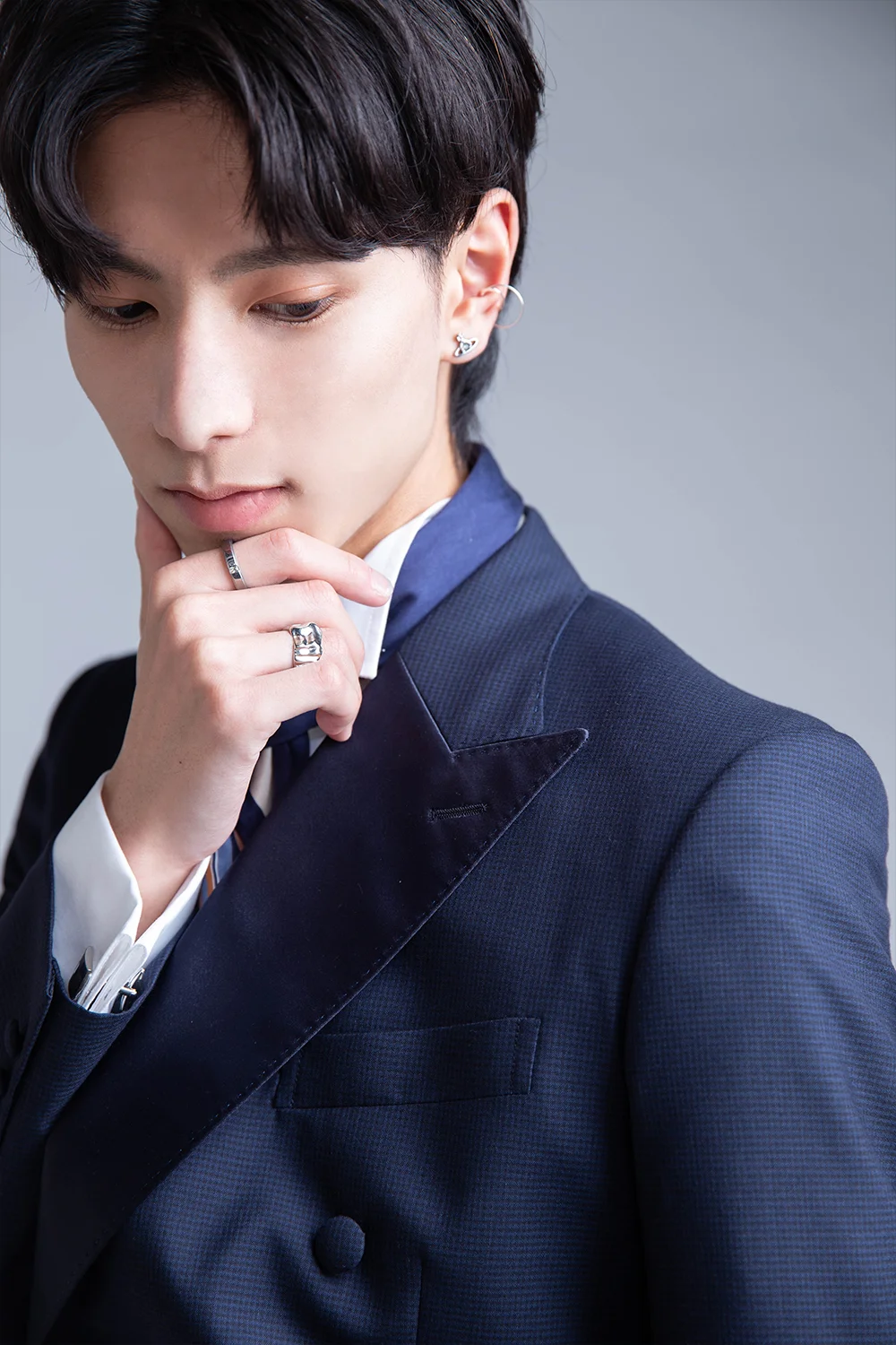 ジャケットは気品があり、サテンの拝絹やピークドラペル