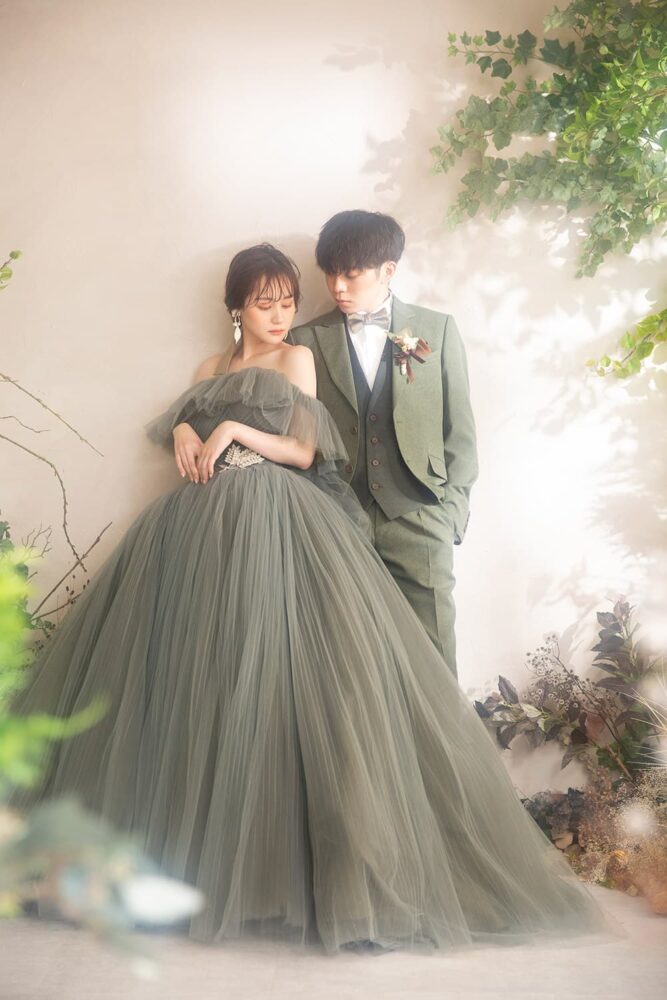 グレーは柔らかく親しみやすい雰囲気で、カジュアルなスタイルや春夏のリゾート婚でも活躍します◎