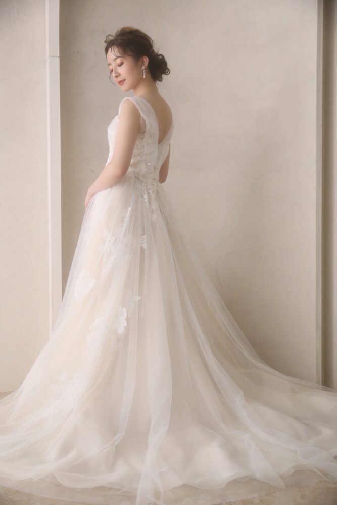 やわらかなチュールの透け感や、レースの華やかな装飾は写真撮影でも存在感を発揮!