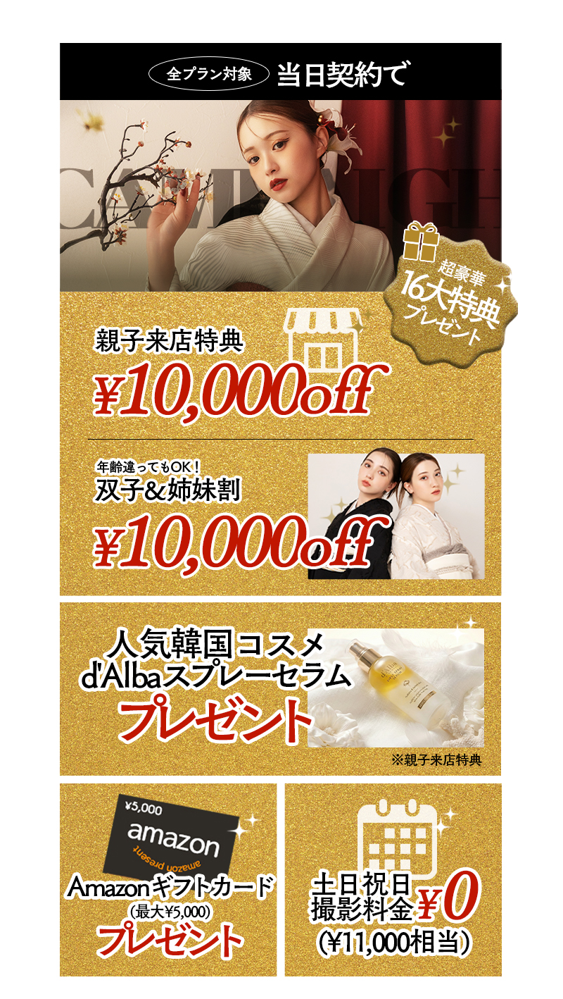写真だけの成人式(前・後撮り)も、振袖レンタルも両方¥29,800(税込¥32,780)からご案内!