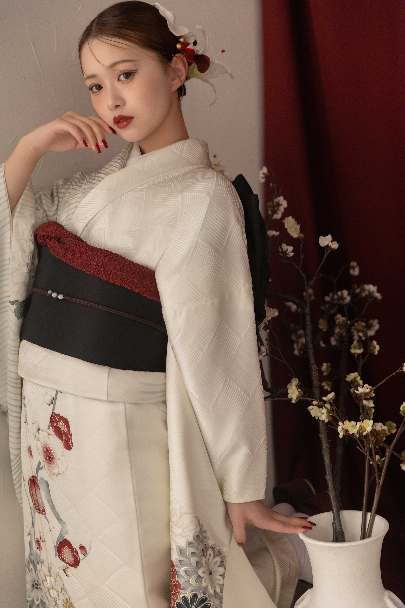 白系振袖は、あなたの個性を真っ白なキャンバスに描くように、自由なコーディネートを楽しめる一着です。