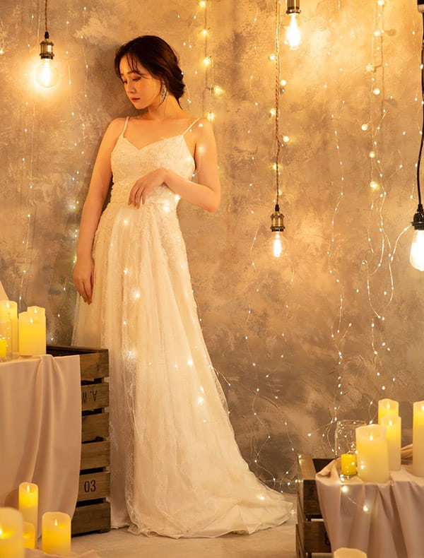 自然光や緑、空との相性も抜群で、写真映えもばっちりです。肩やデコルテを出せるデザインや