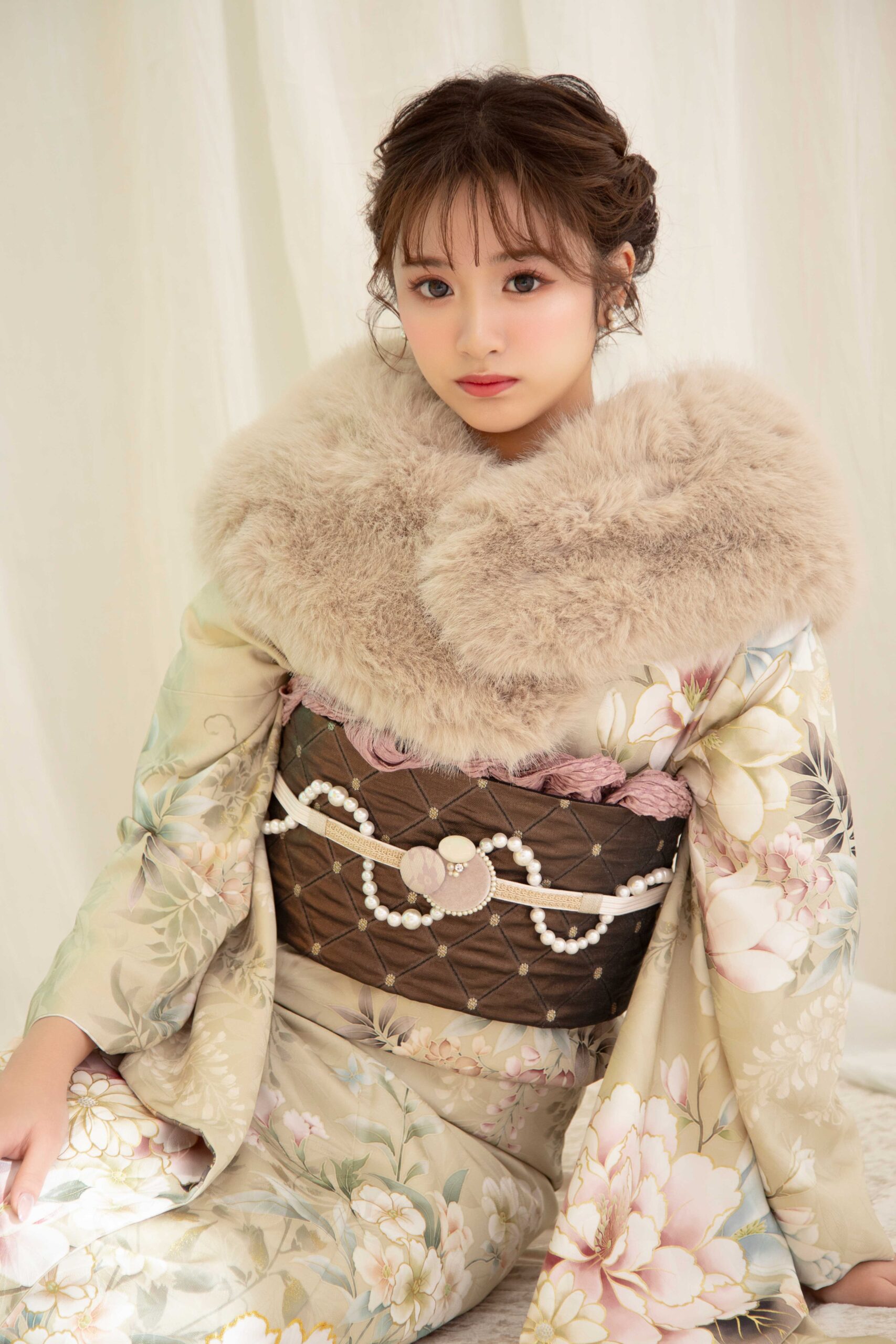 振袖のショールは、寒さ対策だけでなく、お嬢様の美しさを引き立てる大切なアクセサリーでもあります。