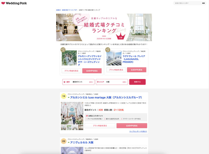 結婚式場ランキングサイト Wedding Parkさんサイト:https://www.weddingpark.net/sl/ranking/search/1-p27/