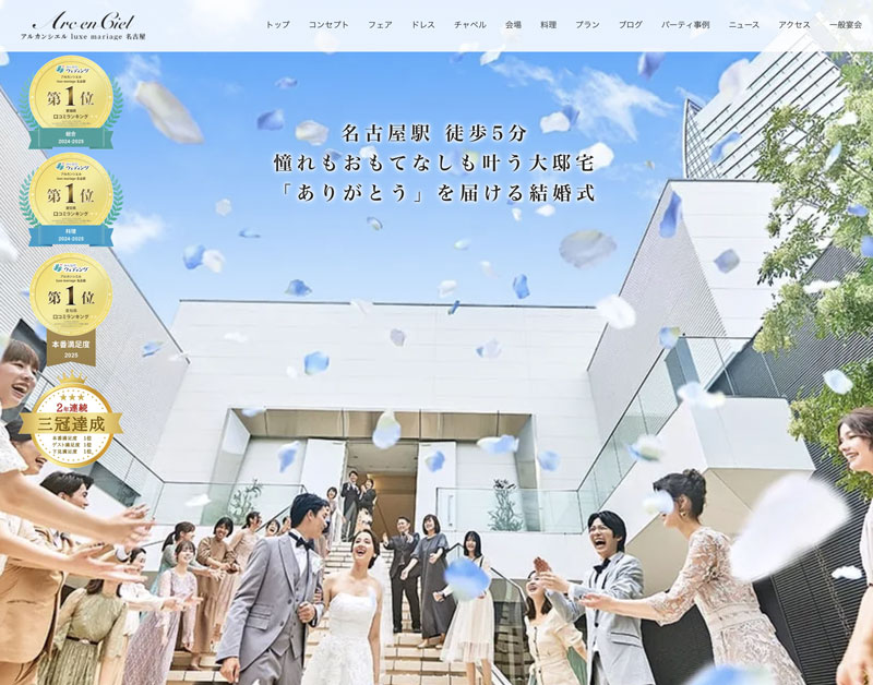 アルカンシエル luxe mariage 名古屋 公式サイト:https://www.arcenciel-g.jp/luxenagoya/