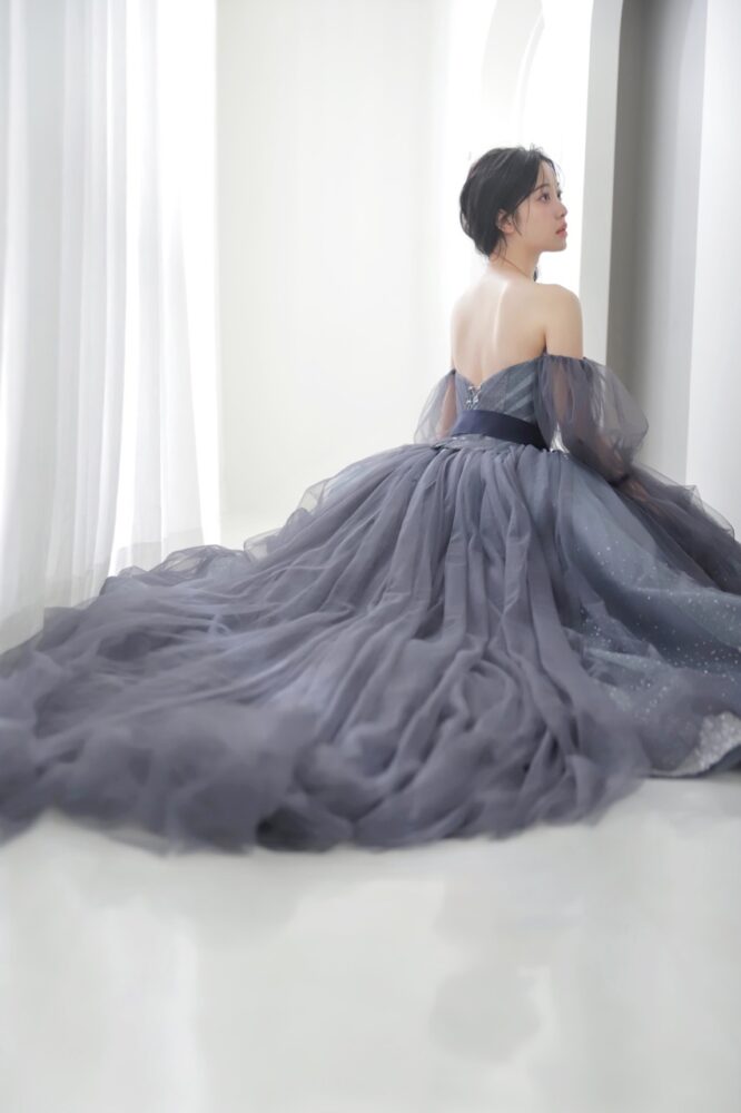プリンセスラインのドレスは、ウエストからふんわりと広がるボリューム感たっぷりのスカートが特徴。