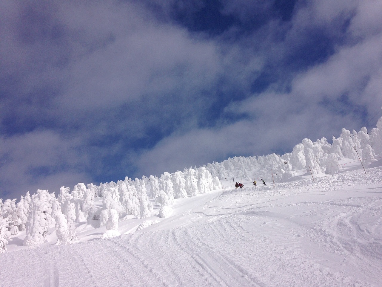 蔵王の厳しい気候と氷点下の風、そして雪が積もることで
