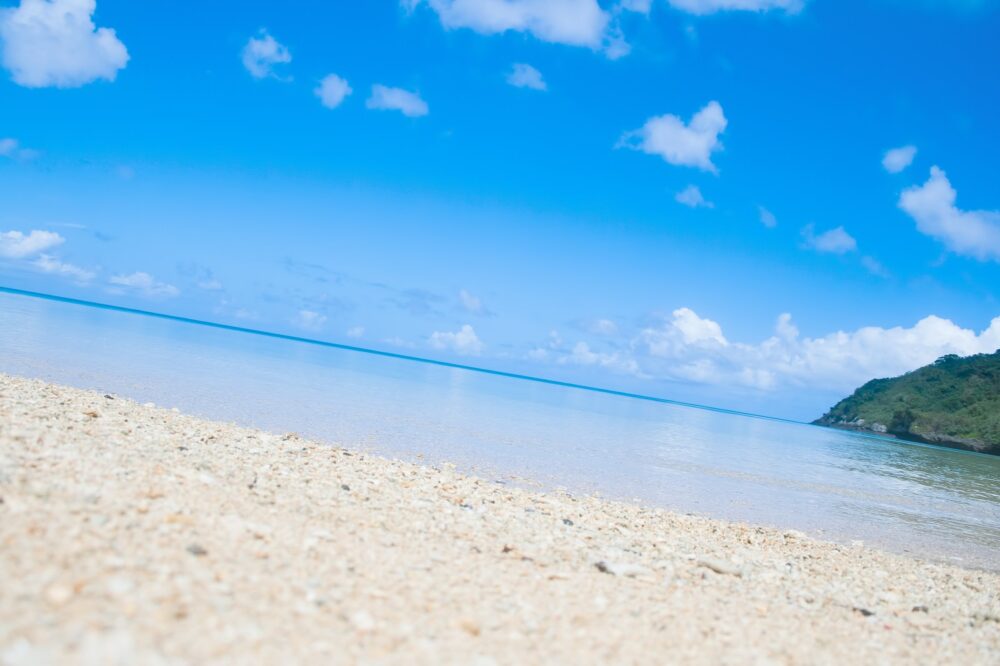 沖縄の青い海と広い空、真っ白な砂浜が作り出す絶景ロケーションは