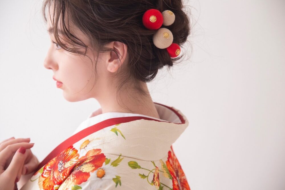 着物の柄や刺繍、小物のコーディネートでオリジナリティをプラスし